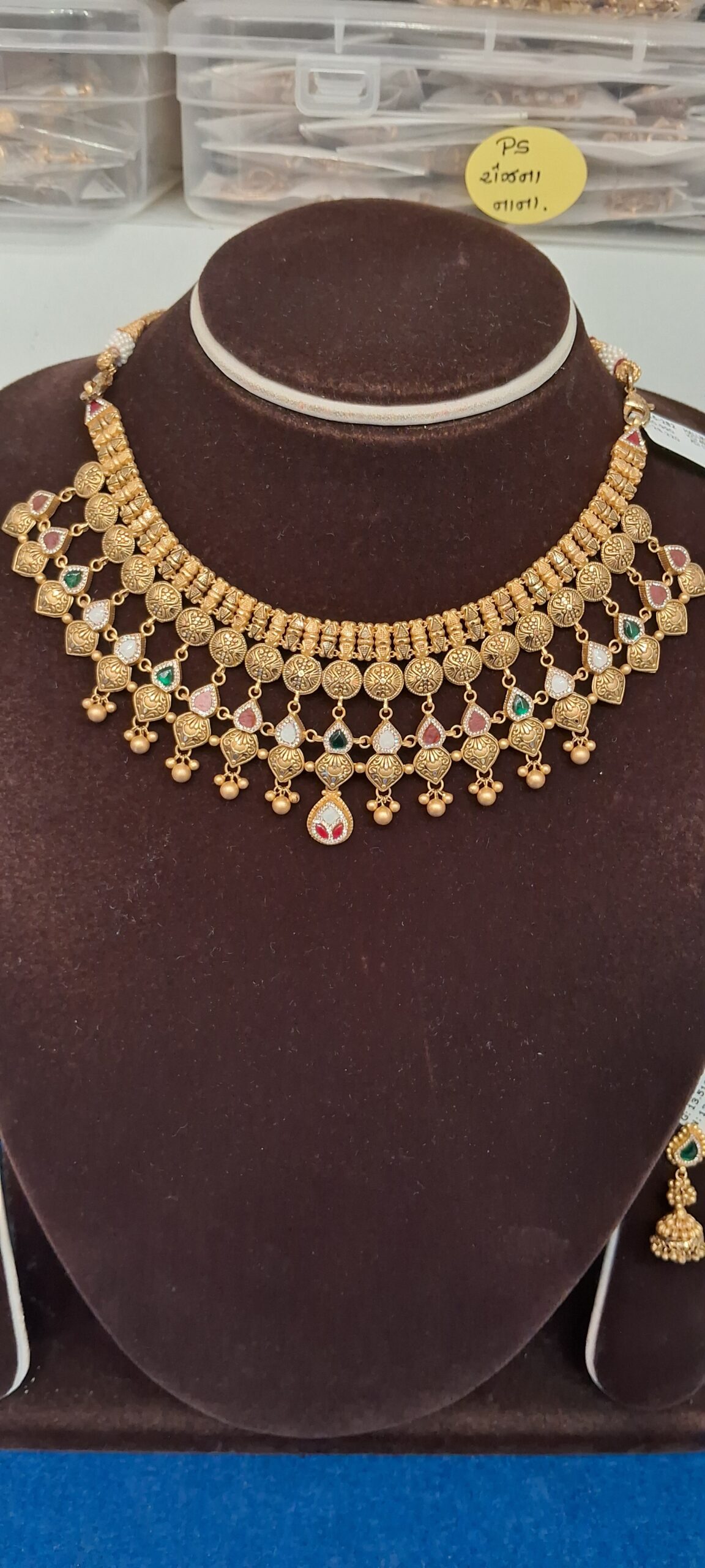 Elevate your jewelry collection with this stunning 916 yellow gold necklace adorned with vibrant white, red, and green stones. This exquisite piece beautifully blends color and elegance, making it perfect for both everyday wear and special occasions.